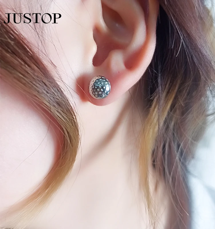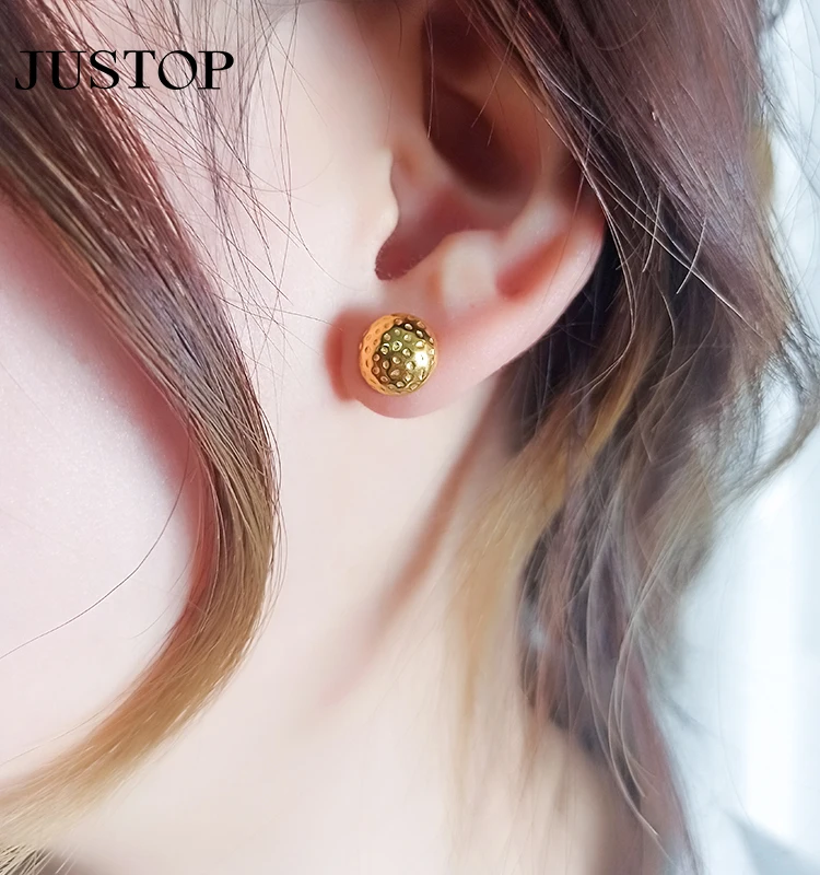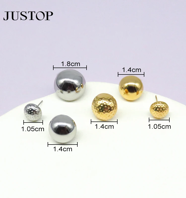 Hot Selling Trendy Golden Bean 316L Stainless Steel Silver Plated Round Ball Stud Earring for Unisex Jewelry